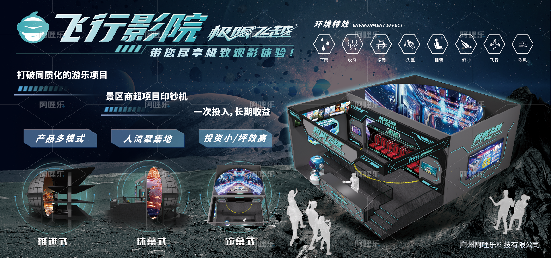 上一篇:極限飛越飛行影院—旋轉(zhuǎn)式懸空動感飛行··· 下一篇:阿哩樂VR沉浸式大空間侏羅紀(jì)主題:探···